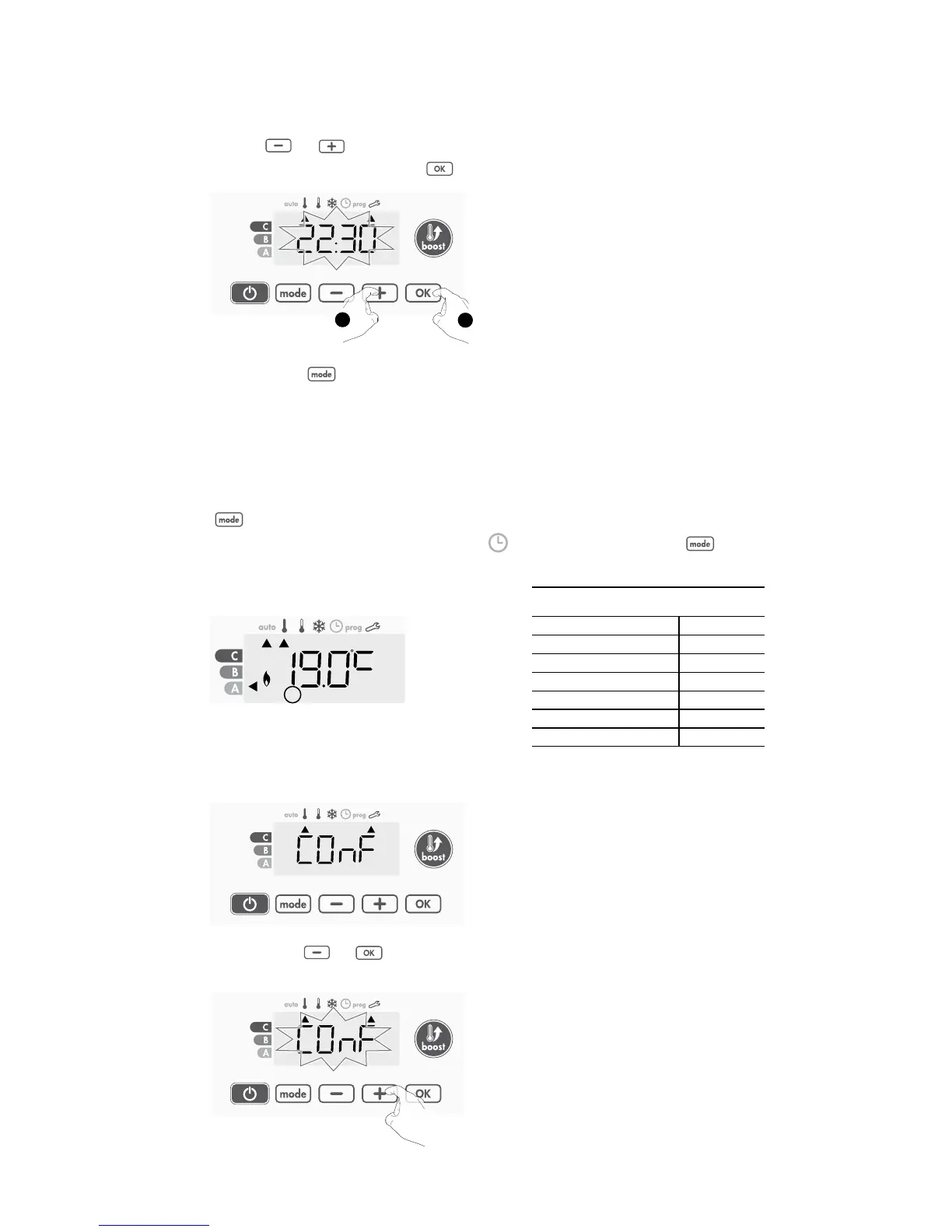 Depuis les modes Auto, Confort, Éco ou Protection antigel, appuyez sur