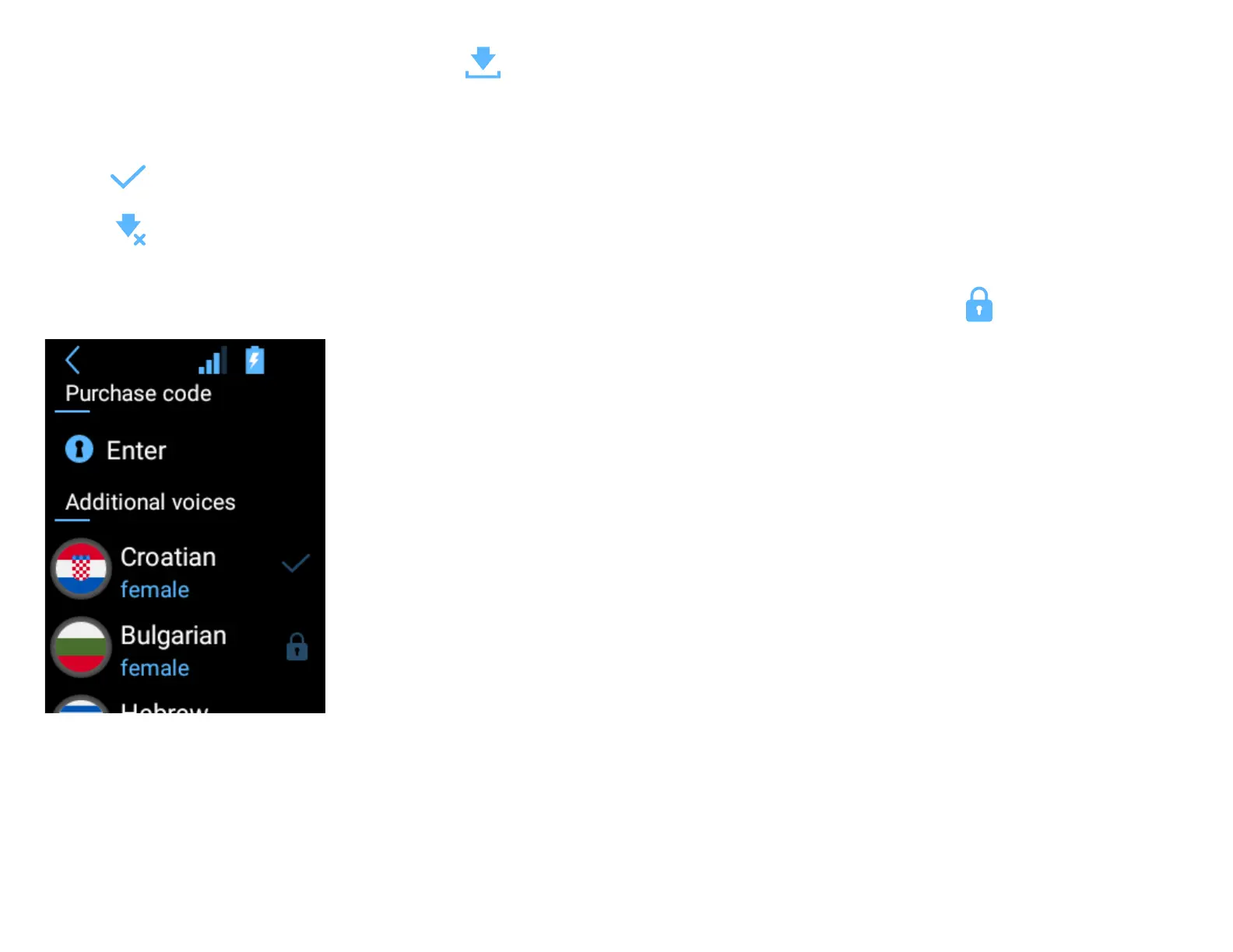Additional voices which are available in the web store, but have not been purchased yet, are marked with the padlock symbol: .