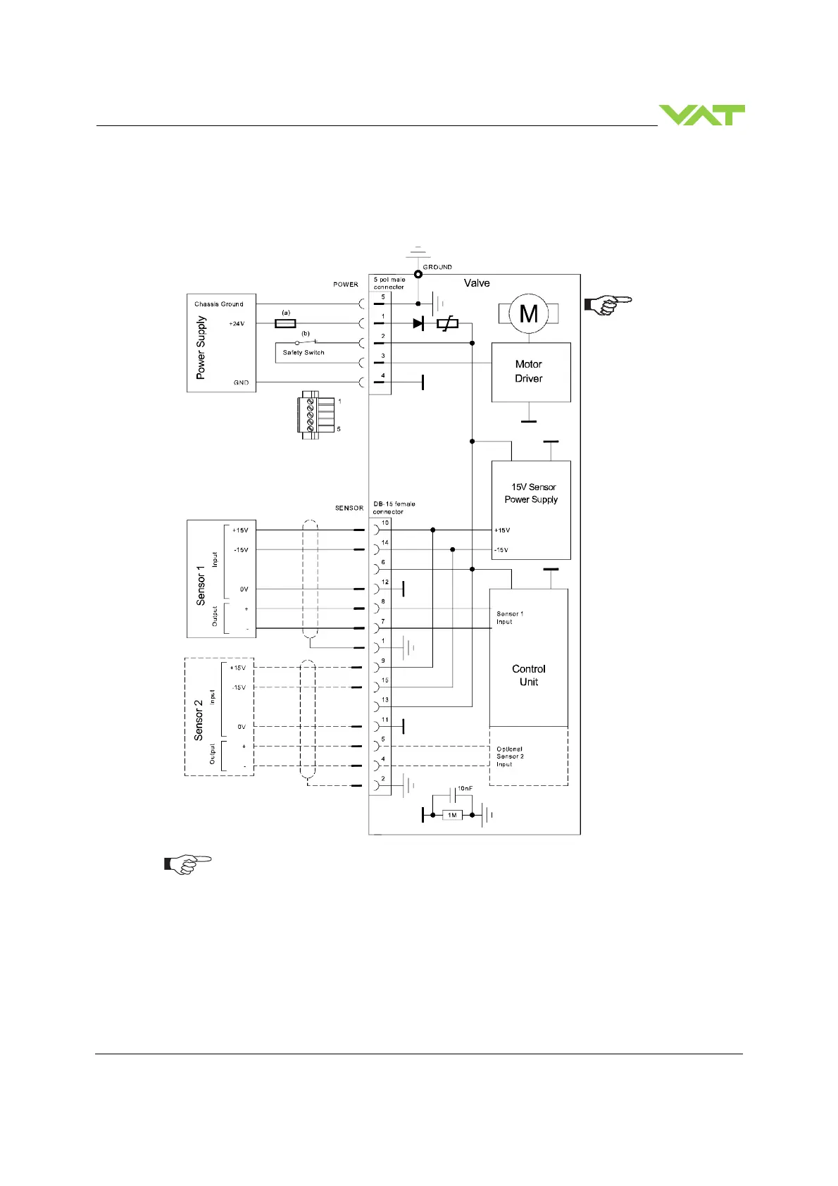 (0V / + / - / ±15 V) at DB–15 female sensor connector exactly as shown in the