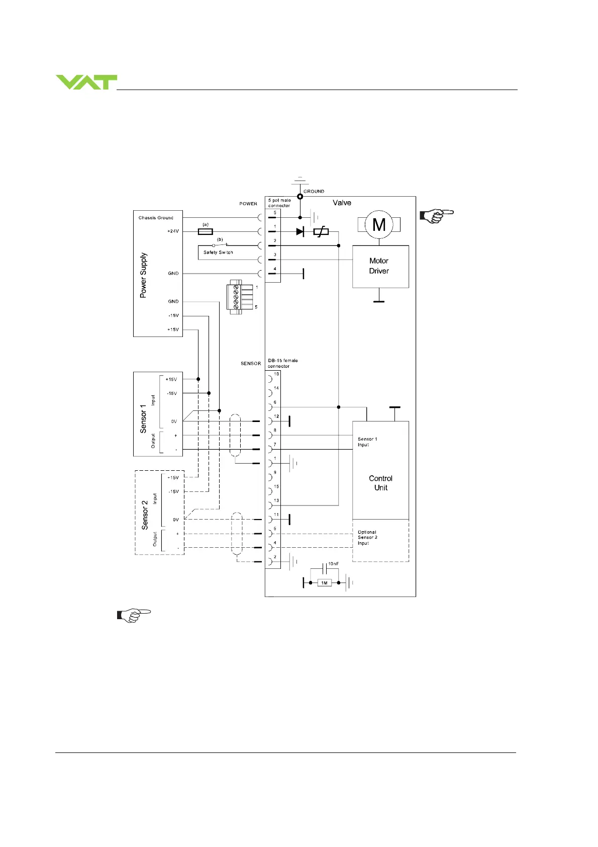 (0V / + / -) at DB–15 female sensor connector exactly as shown in the drawing