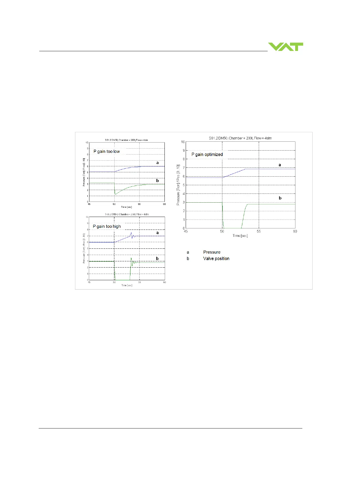 The optimal P gain value is found if the transition from SP2 to SP1 results in a slight pressure over shoot.