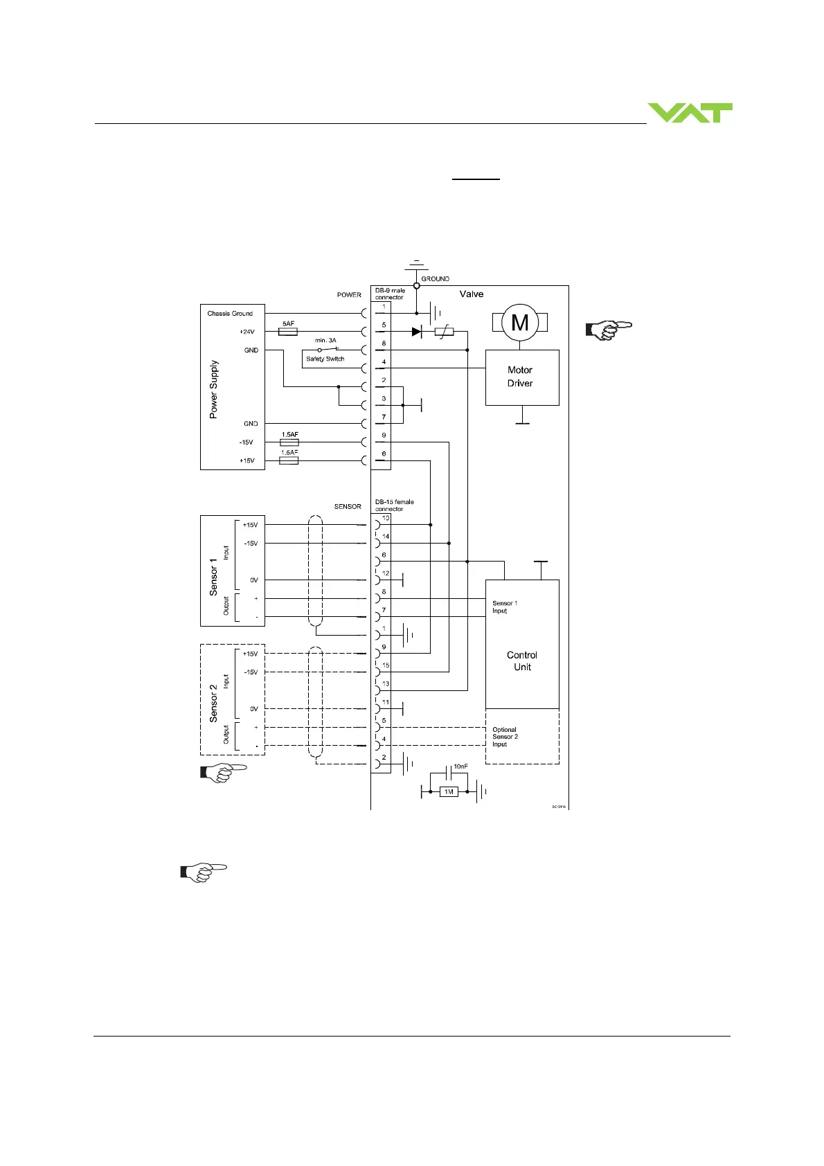 and Sensors (+15V / -15V / 0V / + / -) at DB–15 female sensor connector exactly as shown in