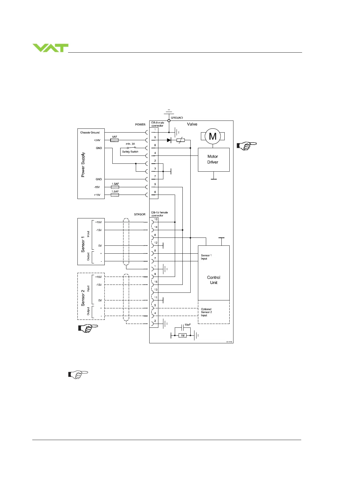 connector and Sensors (+15V / -15V / 0V / + / -) at DB–15 female sensor