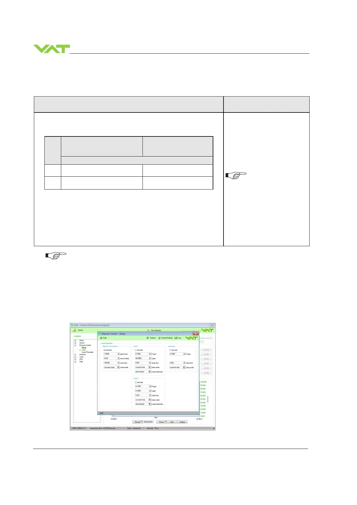 Open the CPA. In menu ‘Pressure Control’ / ‘Setup’, select the ‘Pressure controller’ and do the setup for
