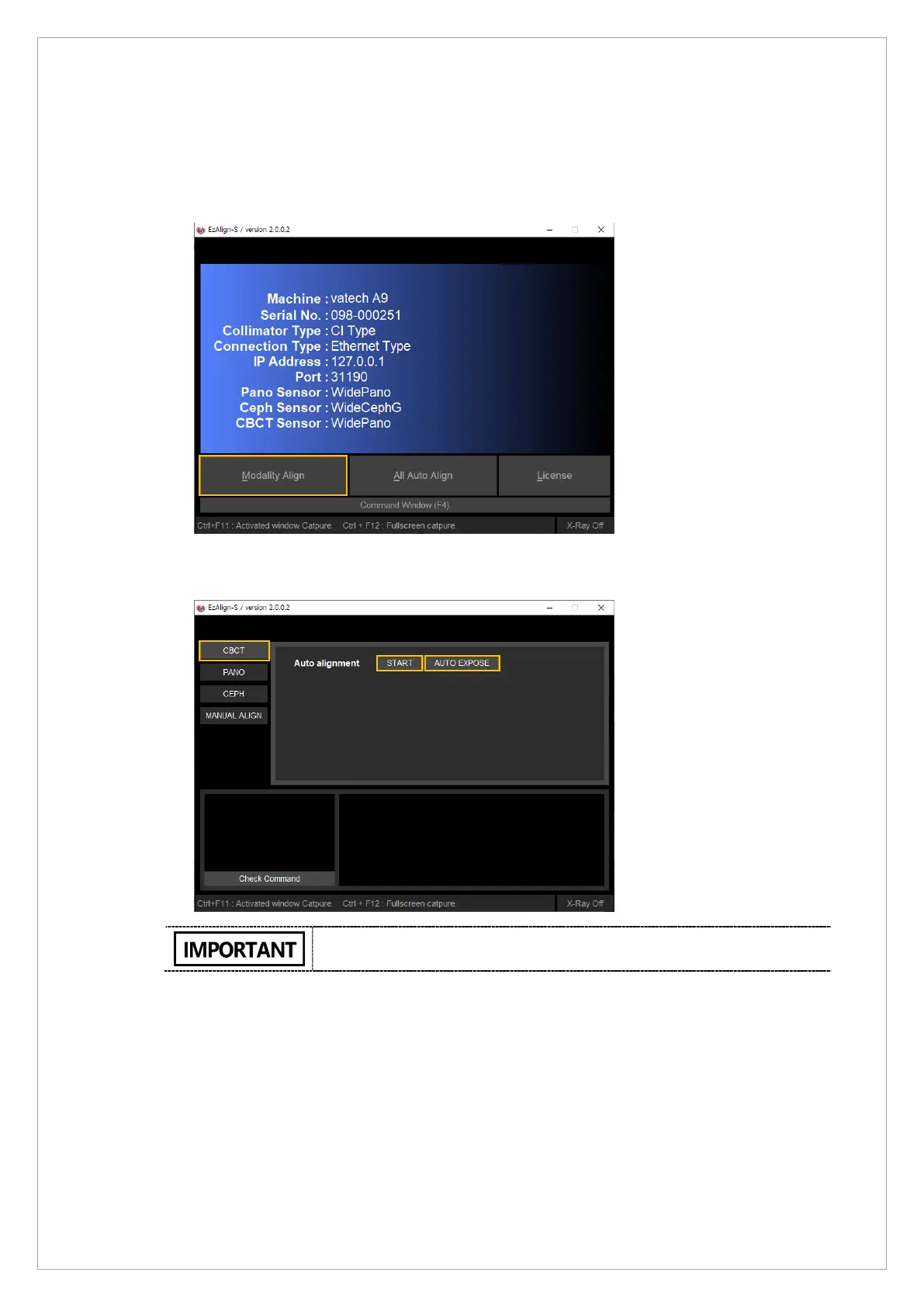 2. Click CBCT and START. After clicking these buttons, the system moves to its capturing