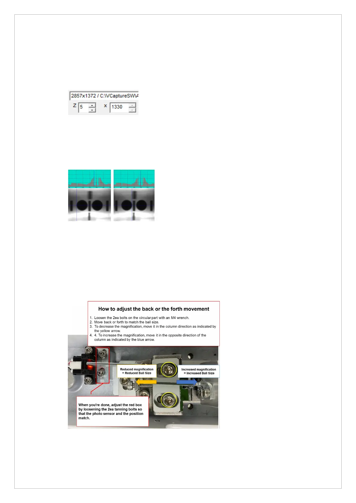 6. Check the Right Center Ball size meets the standard(54 ~ 55 pixels).