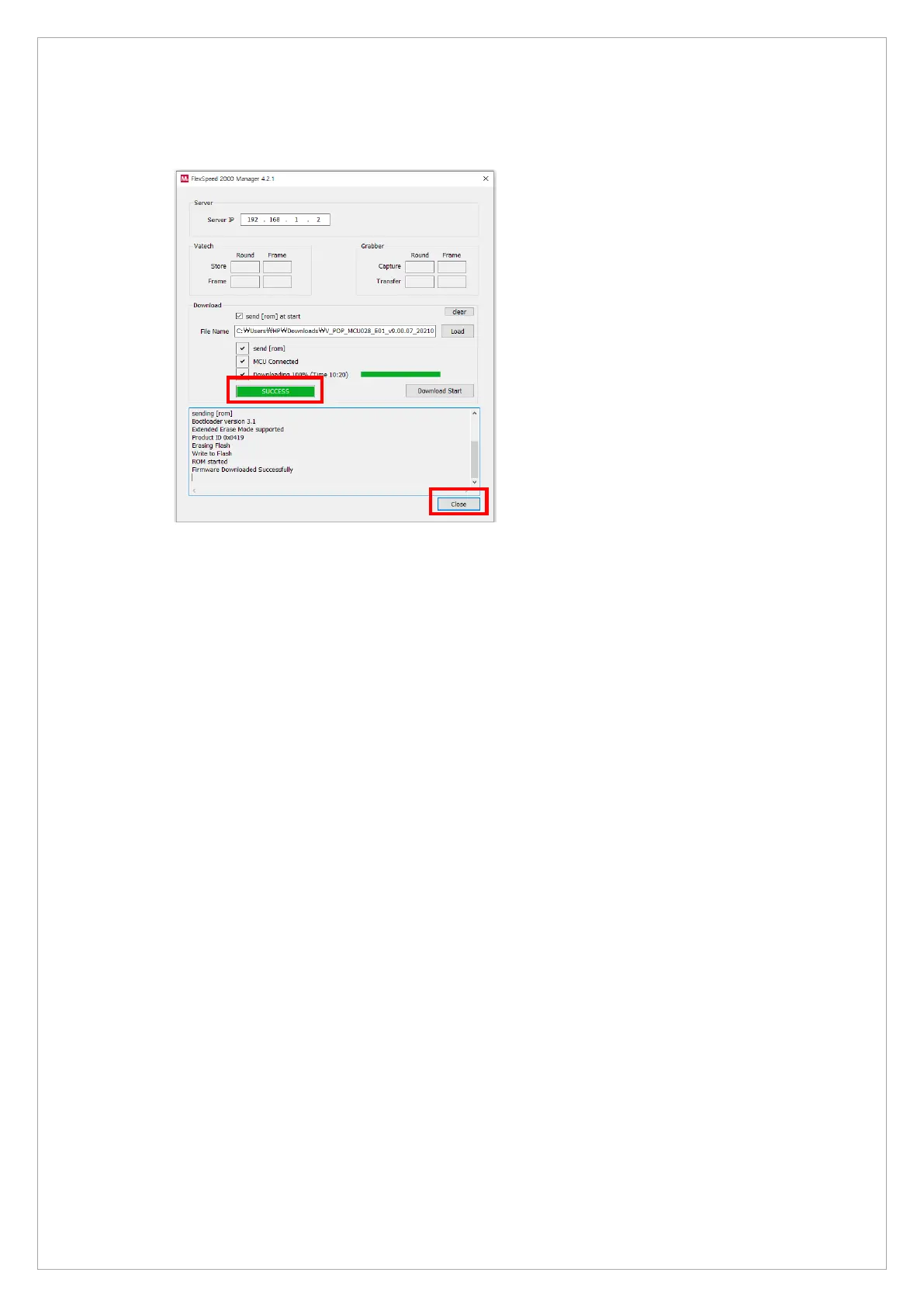 4. When the download is complete, the Success button appears as shown below. Click the Close