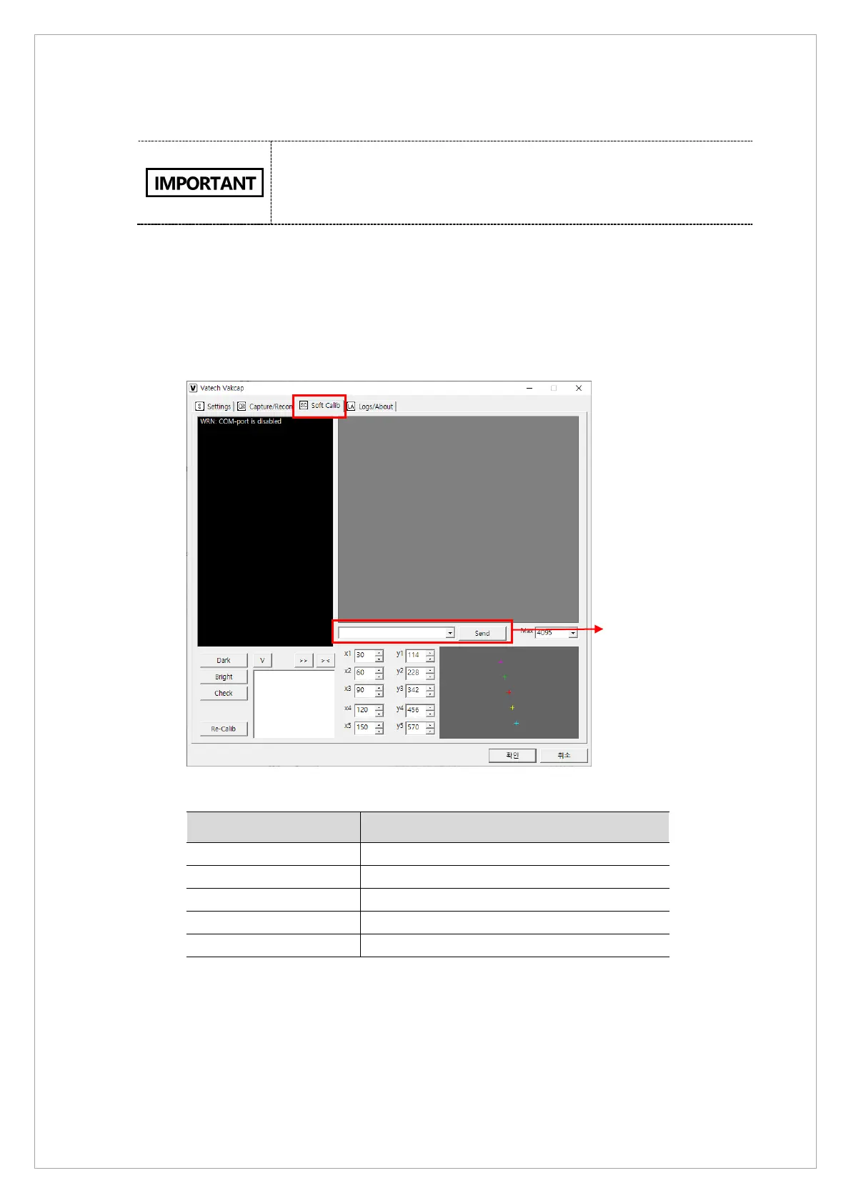 2. On the dialog box, Select Soft Calib and send the following commands to MCU to set CT