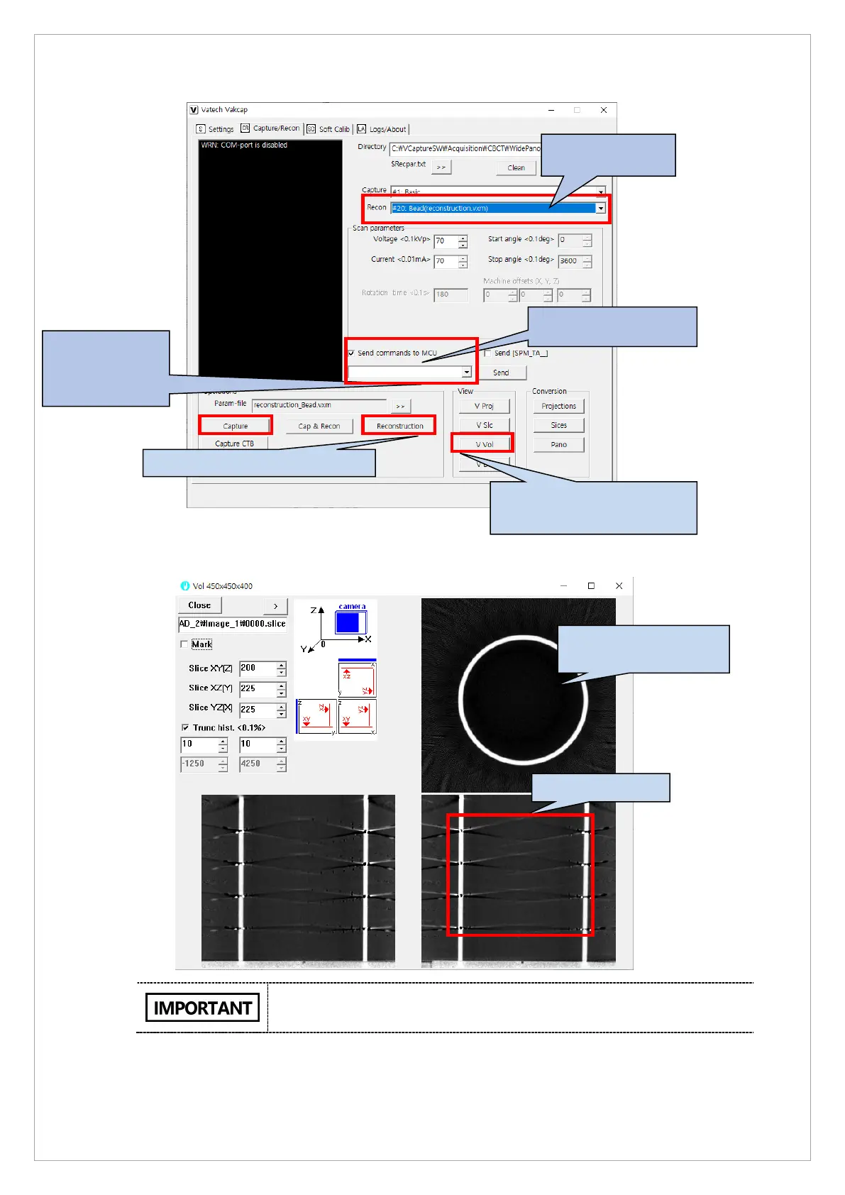 The bead position must be presented at the center of the image; all 4 rows