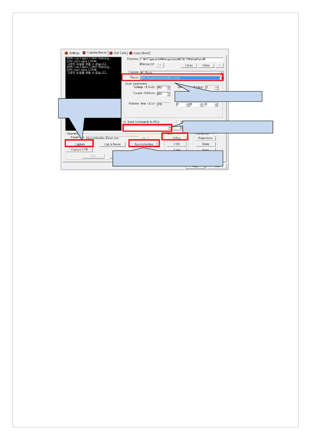 7. Click the Capture/Recon tab and set the parameters and then click the Capture button