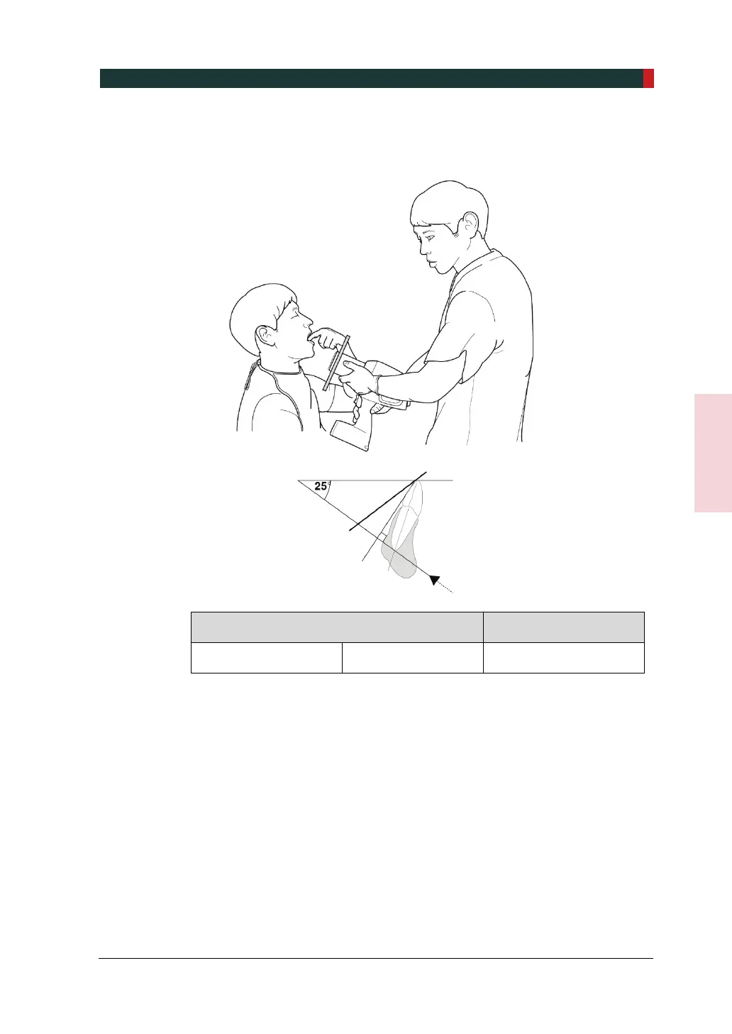 Der Röntgenstrahl wird mit einem Winkel von 25° nach oben gerichtet.