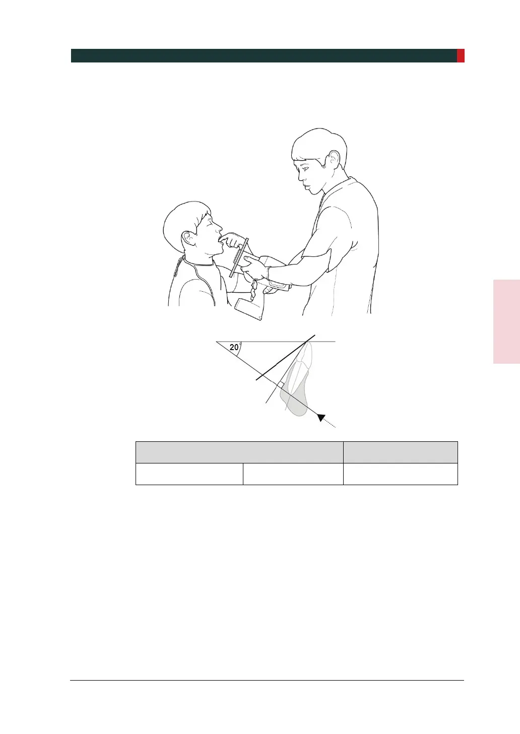 Der Röntgenstrahl wird mit einem Winkel von 20° nach oben gerichtet.
