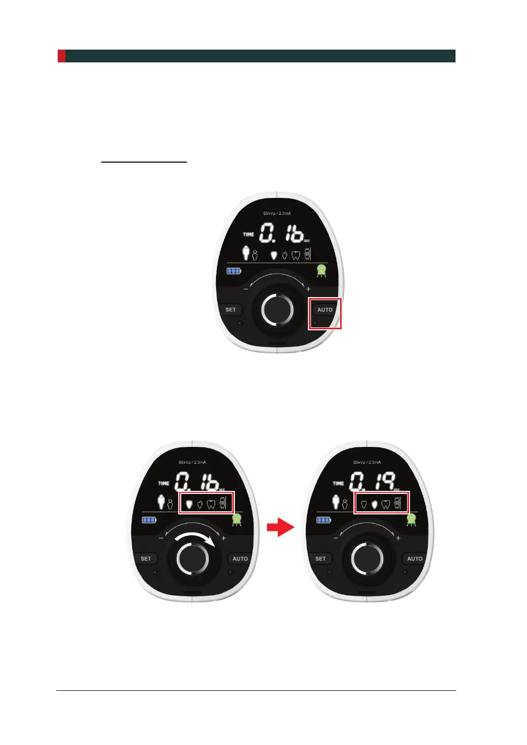 1. Per avviare la modalità manuale, controllare che il pulsante AUTO sia disattivato.