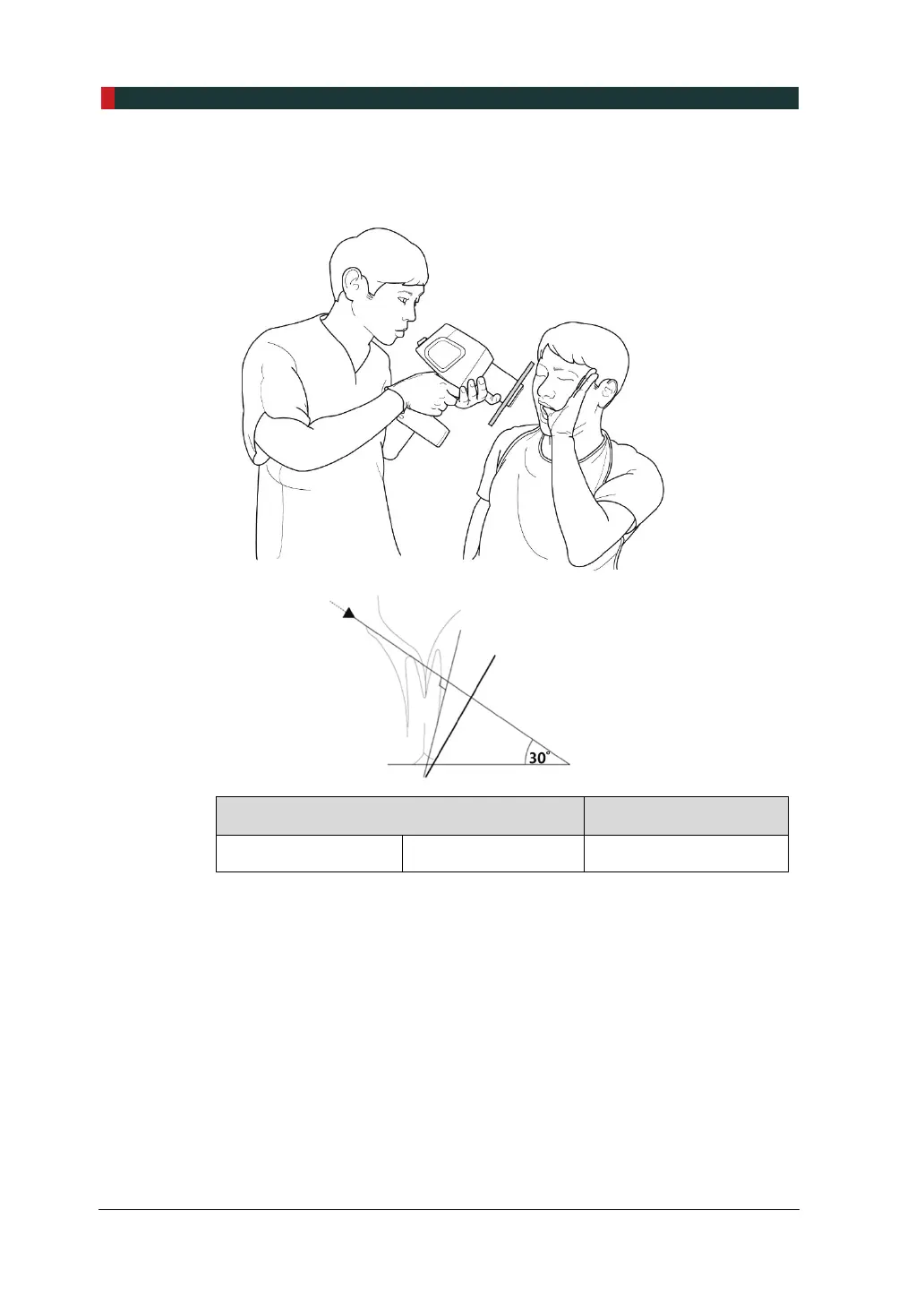 El haz de rayos X se dirige hacia abajo en 30°.