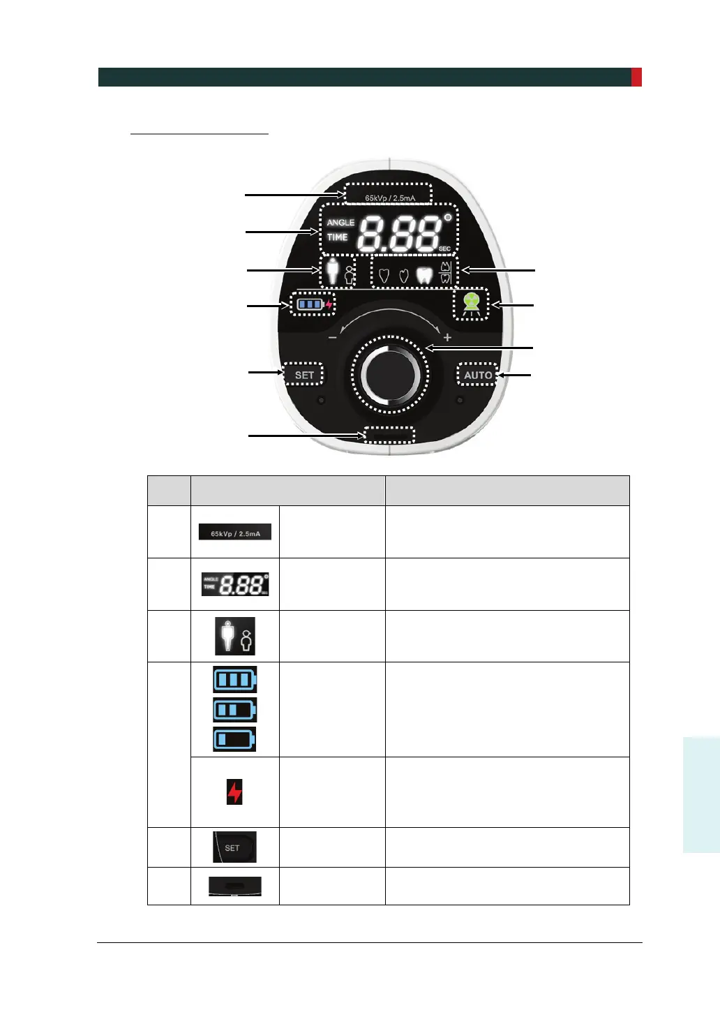Кнопка SET Сброс угла рентгеновского излучения.