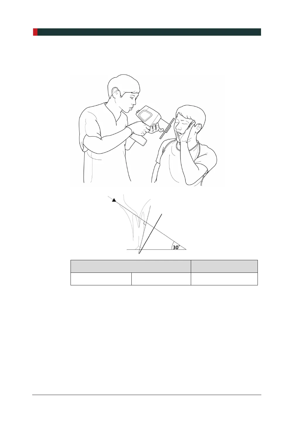 X-ray beam is directed downward at 30°.