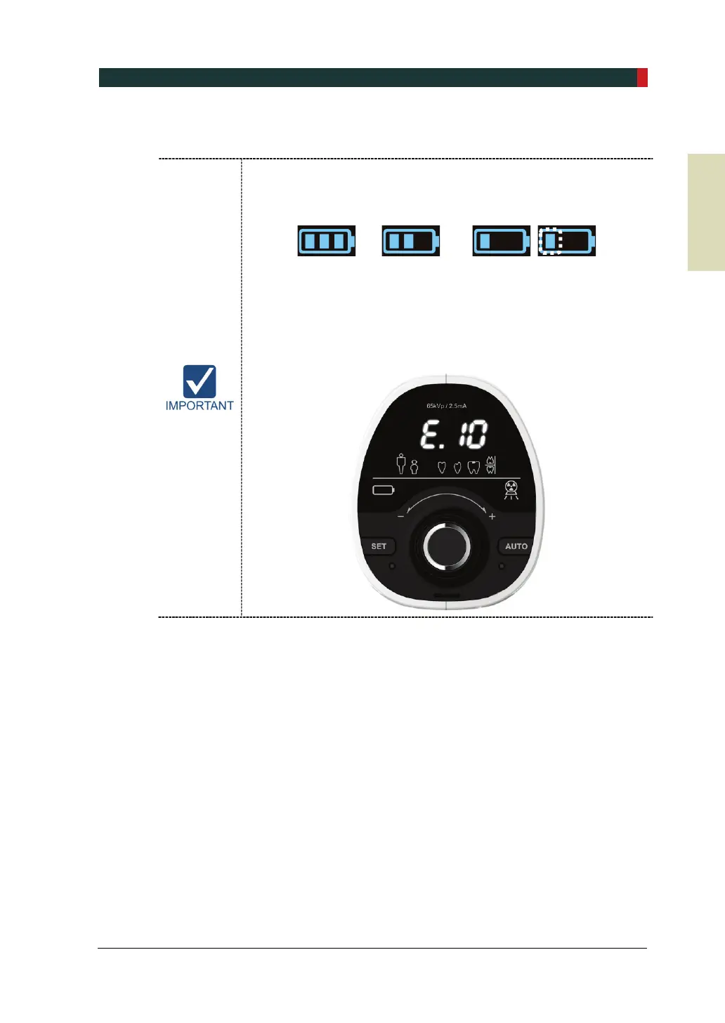 (level 1), charge the battery immediately. Refer to the battery levels as