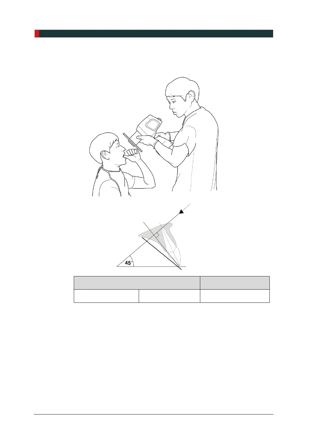 Le faisceau de rayons X est dirigé vers le bas à 45 °.