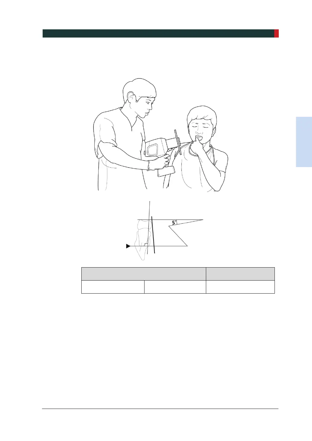 Le faisceau de rayons X est dirigé vers le haut à 5 °.