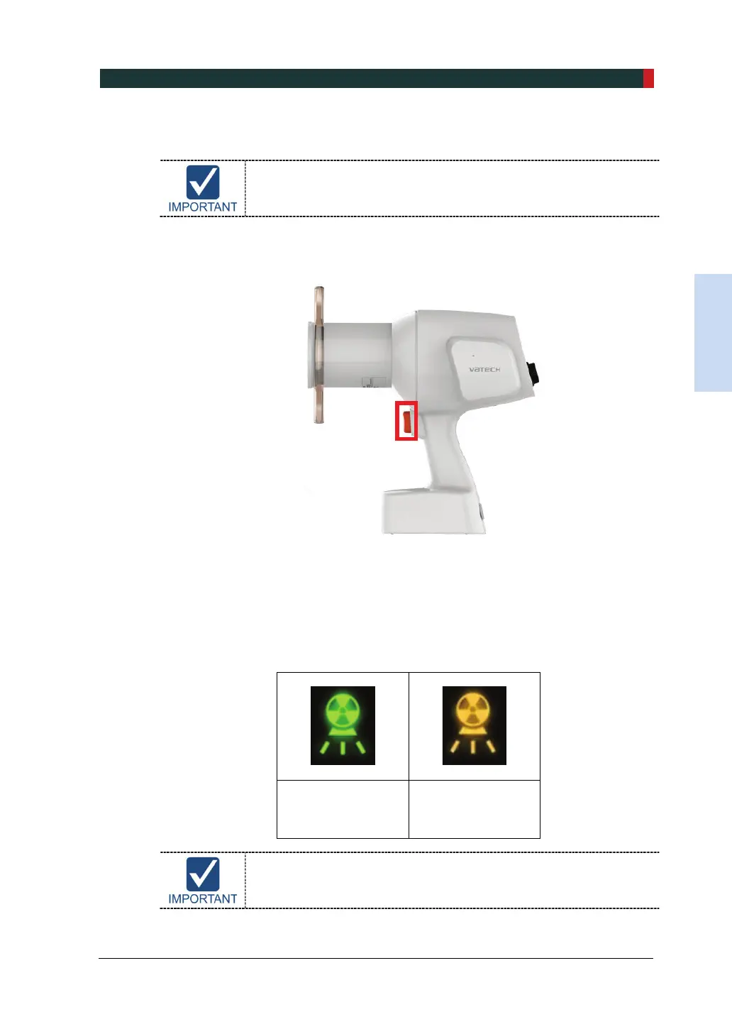 L’indicateur d’exposition aux rayons X s’allume et un son est émis.