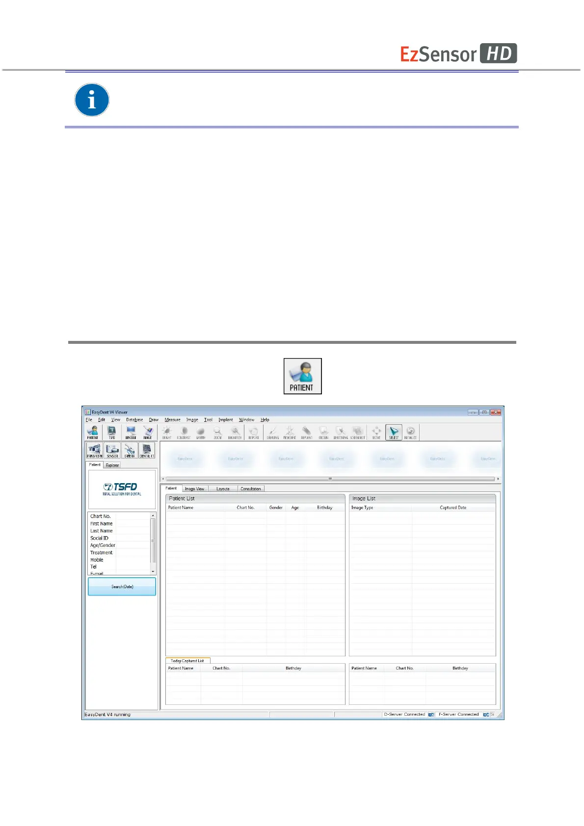 Run EasyDent4 Viewer. Click the ‘Patient ( )’ button to register a new patient.