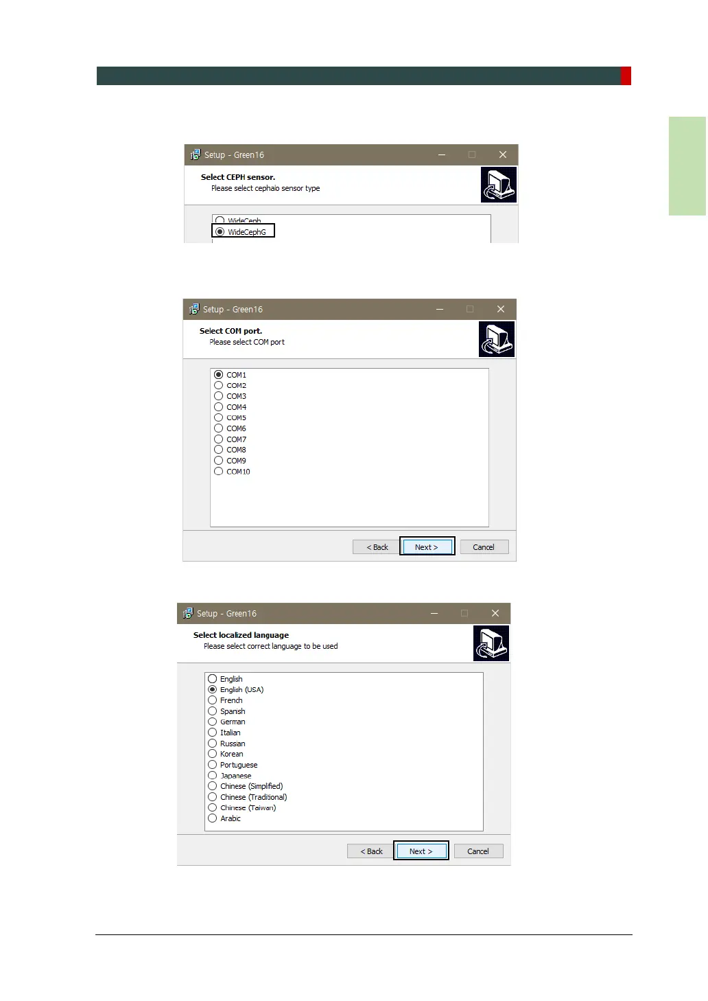 9. Select a language for your equipment and click Next.