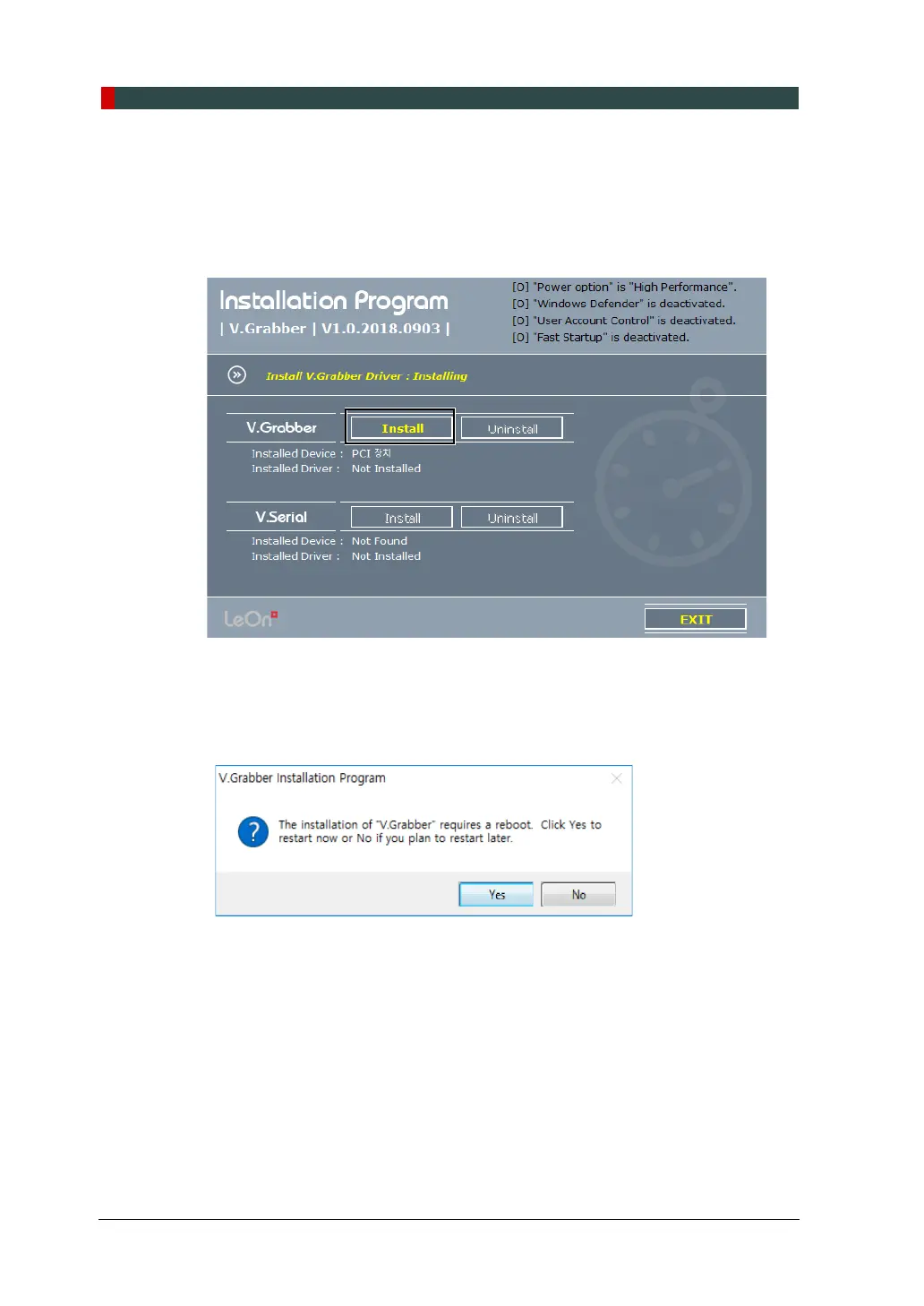 appears. Click the Yes button to immediately reboot or the NO button to reboot