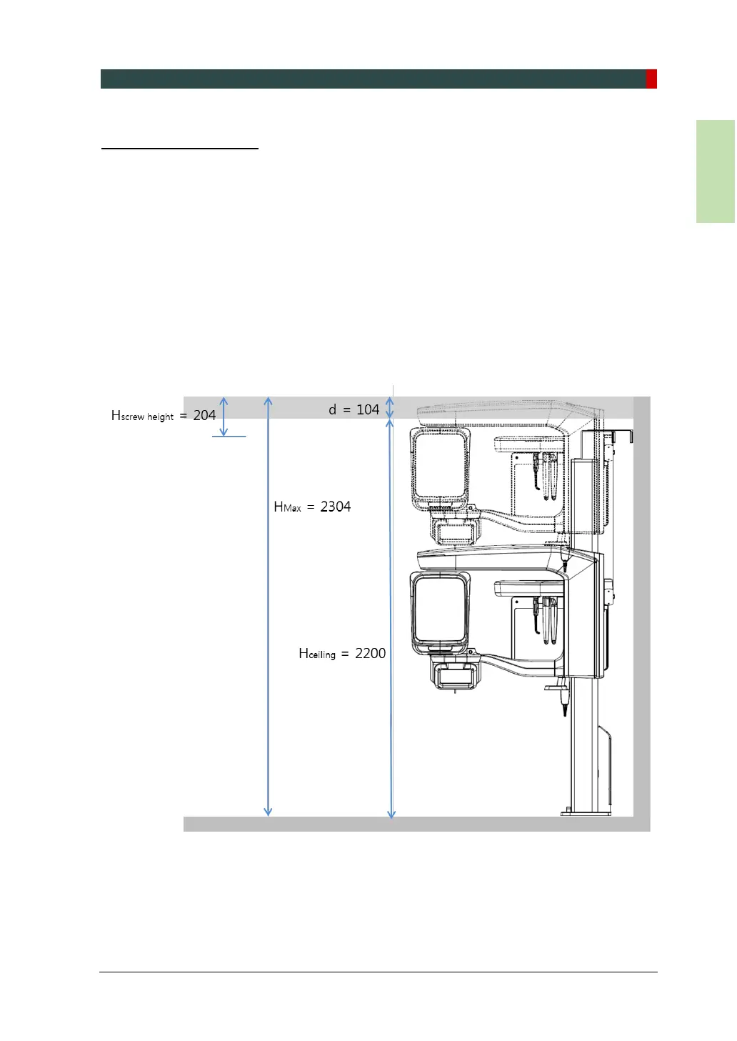 100 mm: the minimum desired distance between the ceiling and the top of the