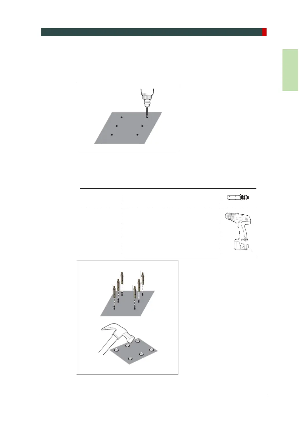 4. Put the anchor bolts into the holes and attach them with the hammer. Verify that
