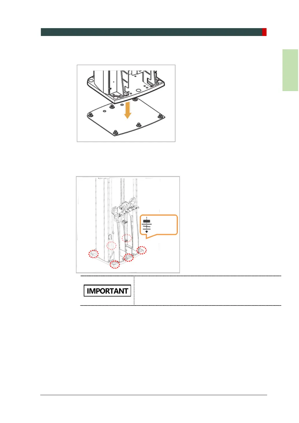 4. Put the washers and nuts into the six anchored bolts on the floor and tighten the