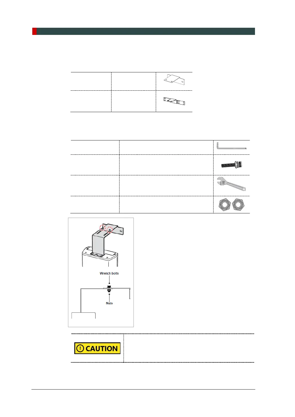 2. Combine the column and wall brackets in the following manner with the 2 wrench
