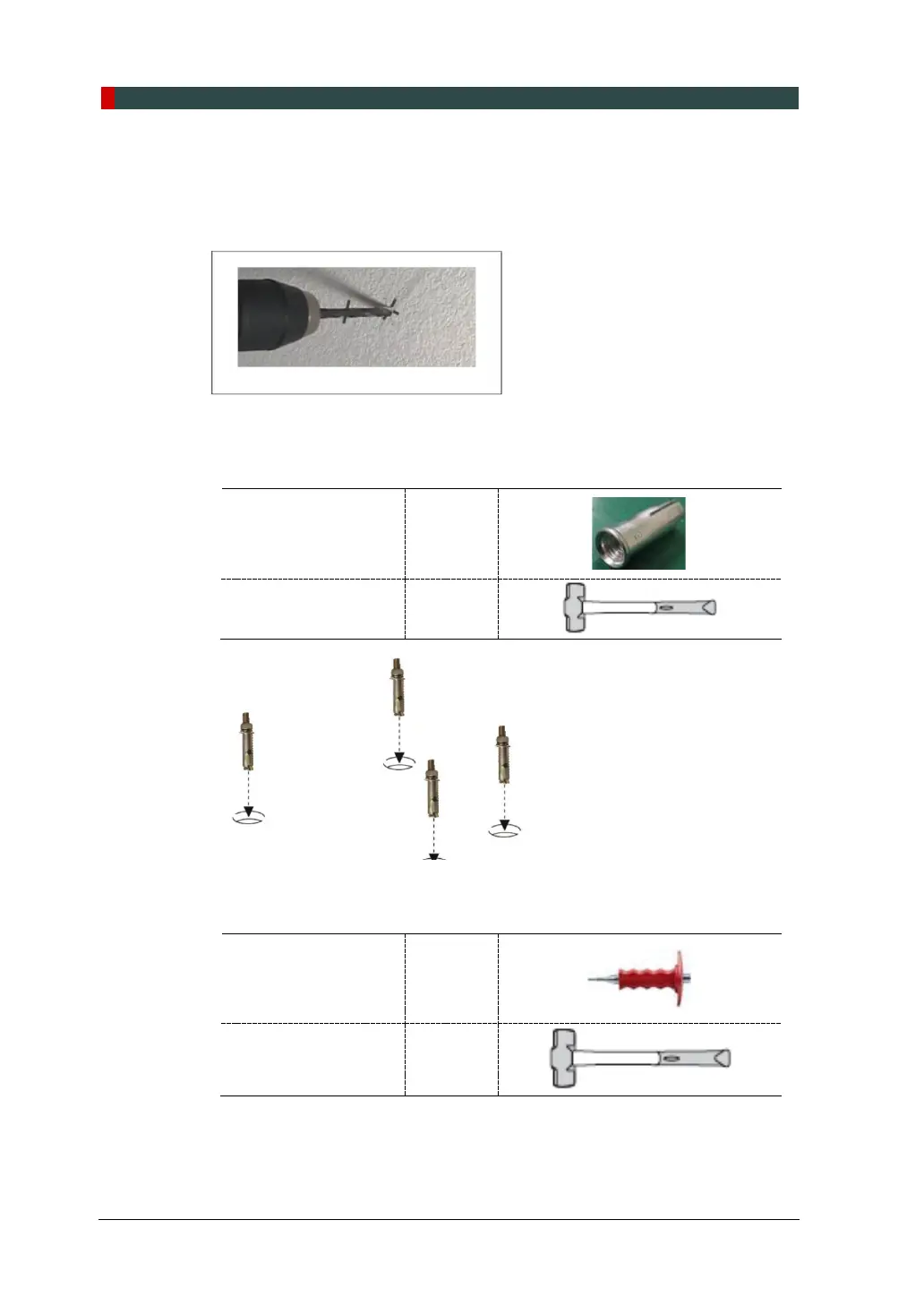 3. Using the hammer, insert a Ficher strong anchor into the hole.