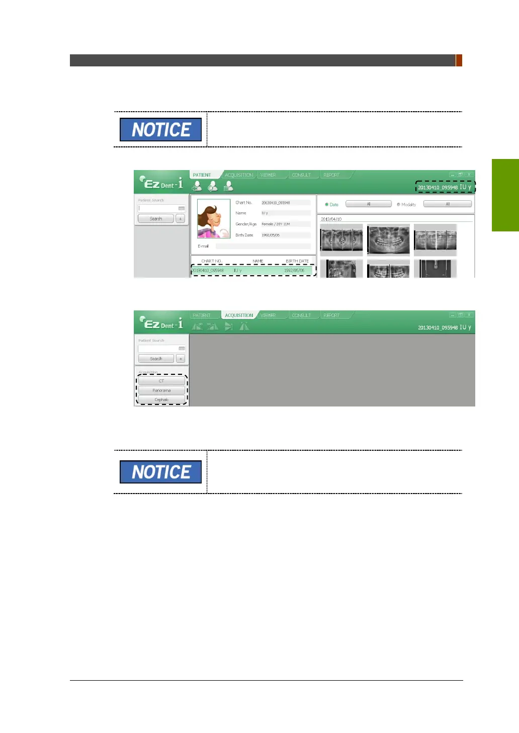 2. Cliquez sur l’onglet ACQUISITION et sélectionnez le mode de radiographie (CT,
