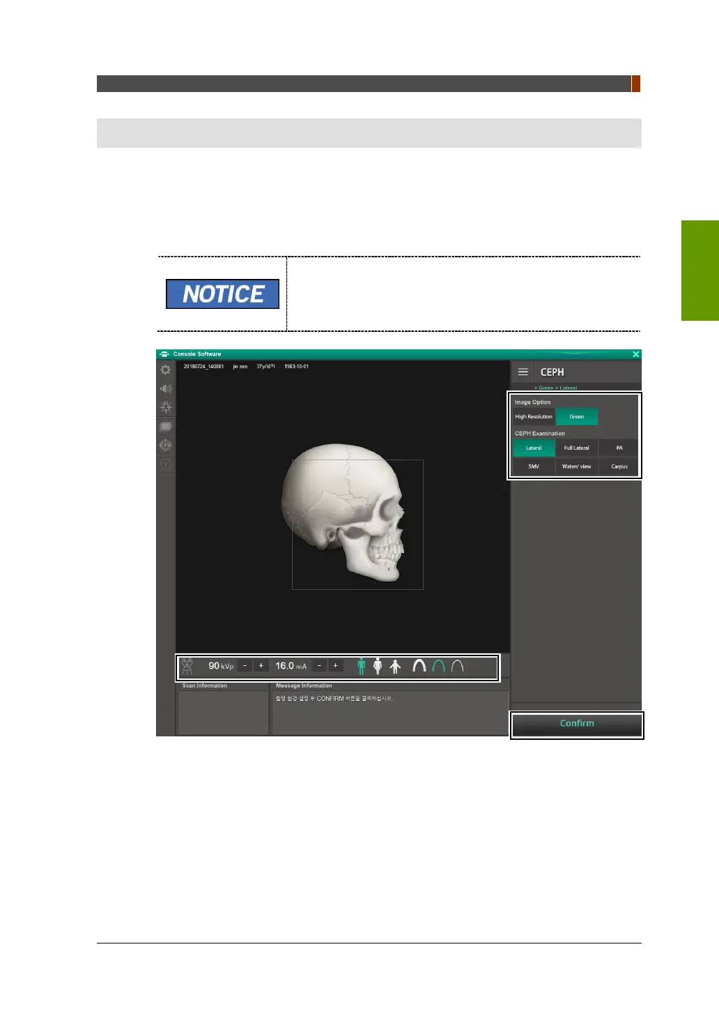 Pour l’acquisition d’images CEPH, il faut d’abord avoir suivi la procédure décrite dans
