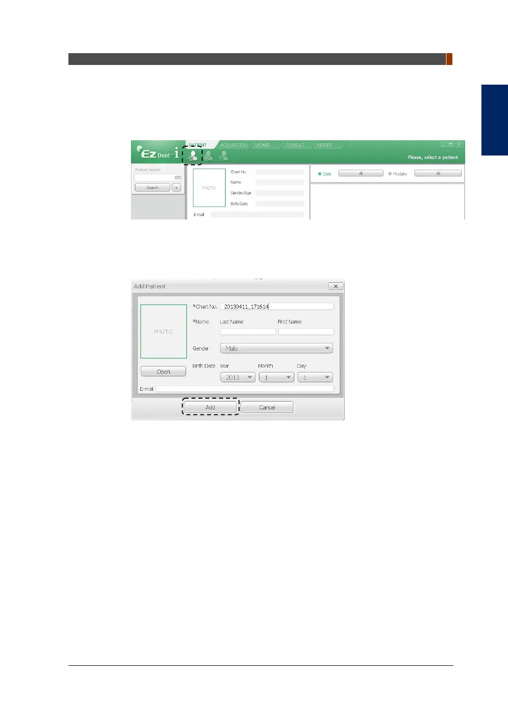 1. Click the PATIENT tab and click the Add Patient icon from the main GUI window.