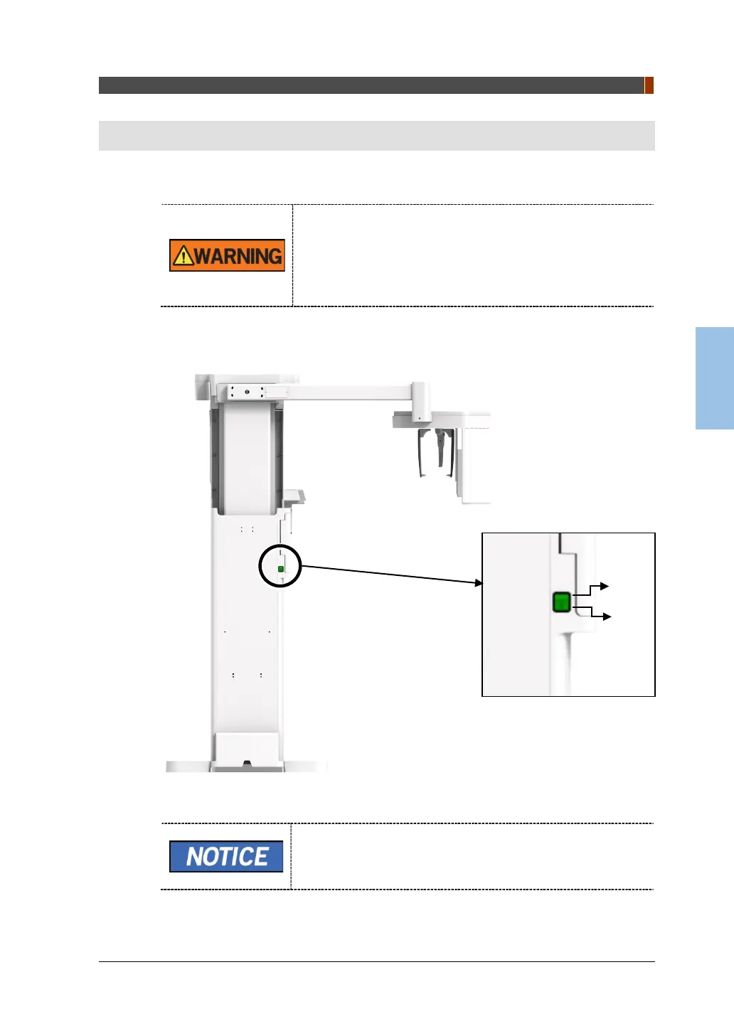1. Drücken Sie den Hauptstromschalter, in der Mitte der Säule, um das Gerät