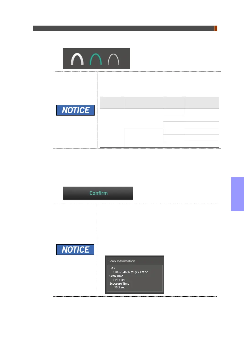 mA. La dosis se puede ajustar en ± 1 kVp y ± 0,1 mA, respectivamente.