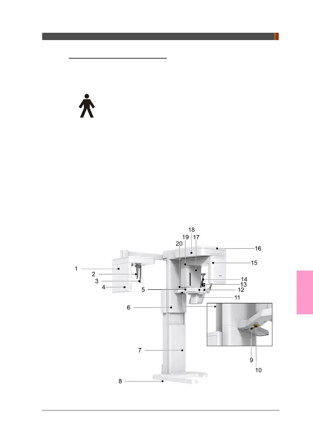 рабочая часть аппарата типа В: височные опоры, опоры для подбородка и