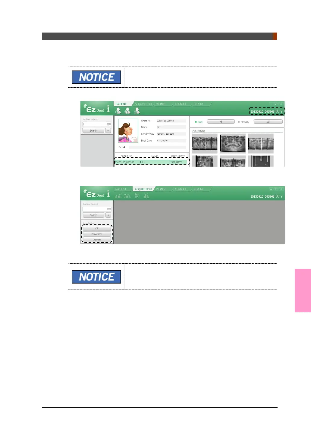 1. Выполните поиск и выберите пациента для получения снимка.