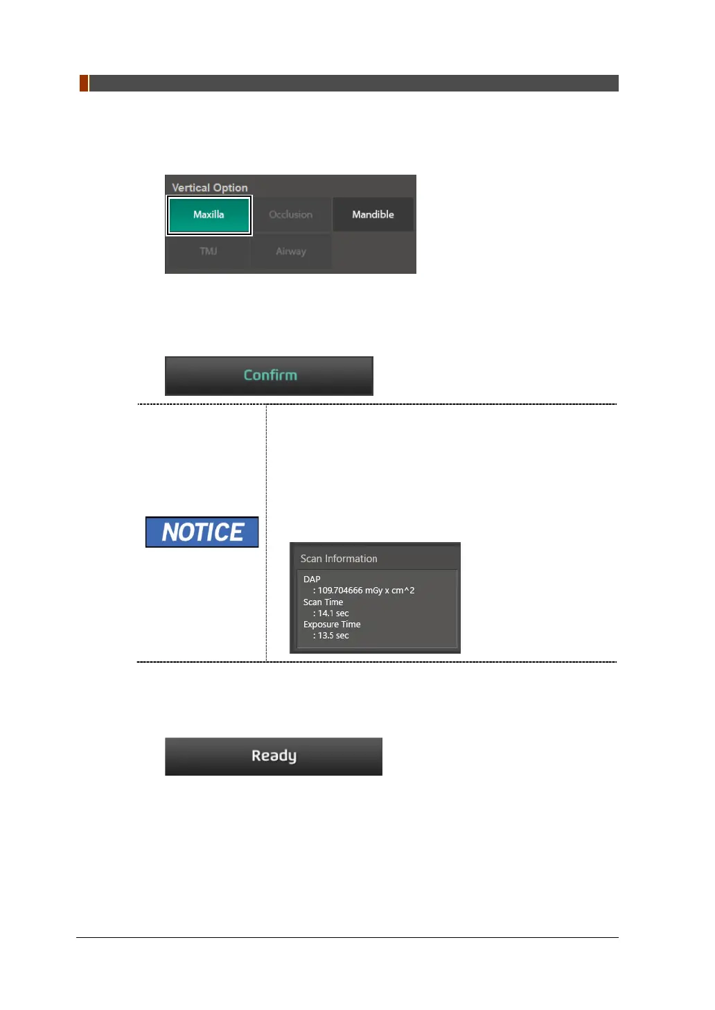 5. Press the READY button. At this time, X-rays are not irradiated.