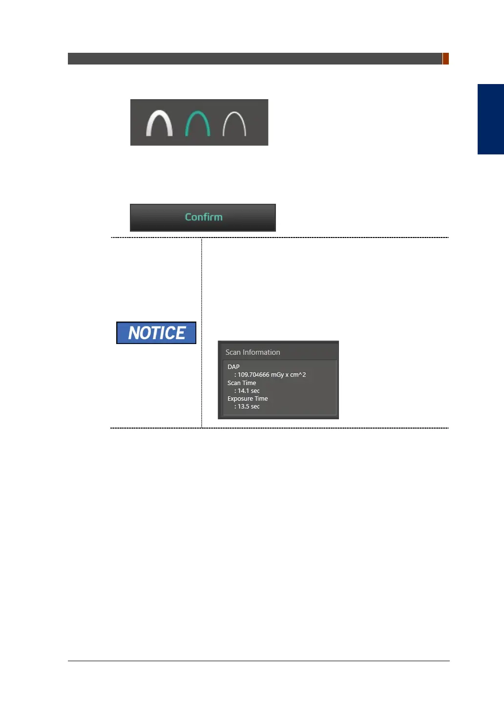 6. Click the CONFIRM button when the exposure parameter setting is completed.