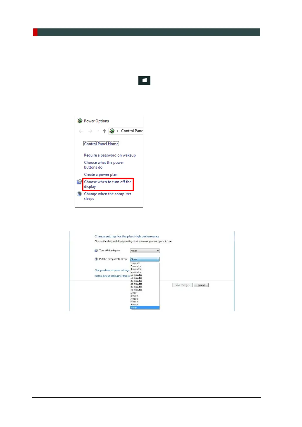 3. Click Choose when to turn off the display.