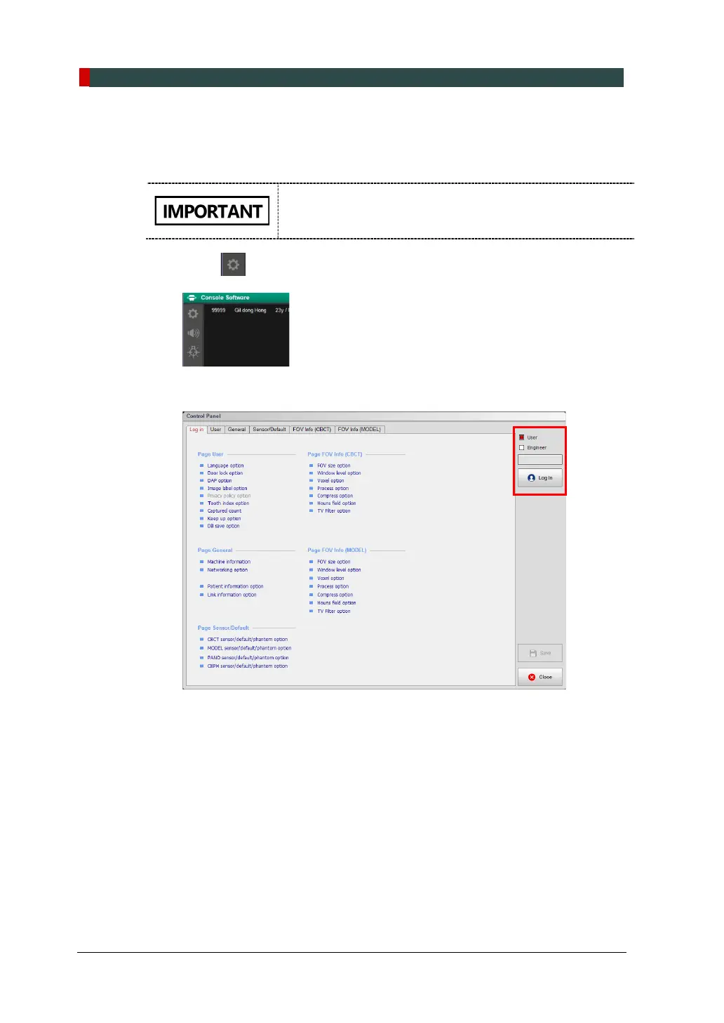 2. Check ‘Engineer’ and type the password (vatech). Then click Log in.