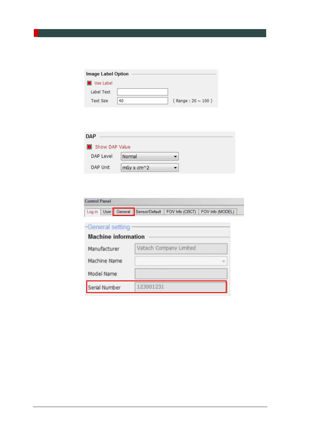 7. In the Image Label Option, check that the default equipment’s brand name