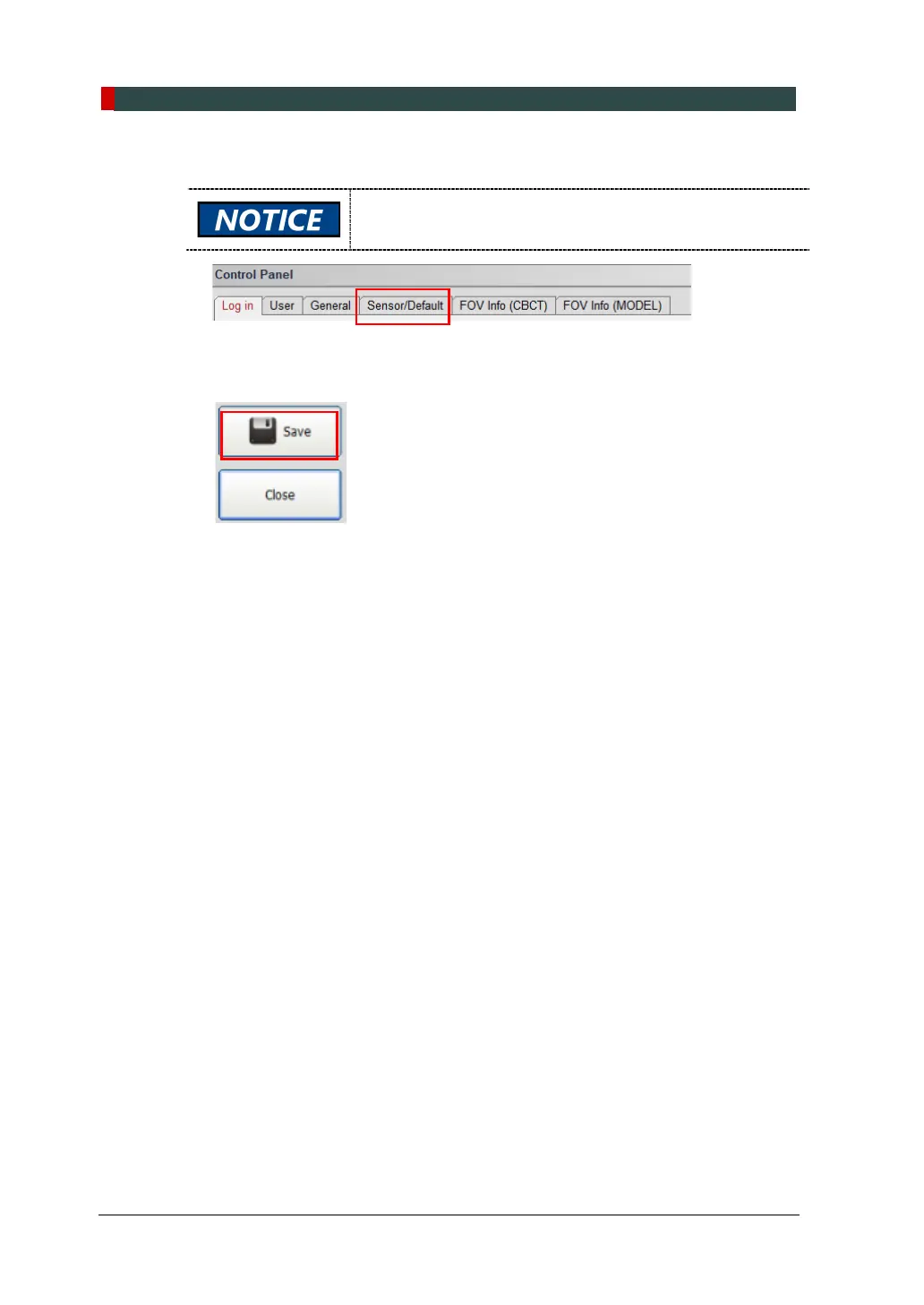 12. Click on the Sensor / Default tab and configure the user-defined parameters.