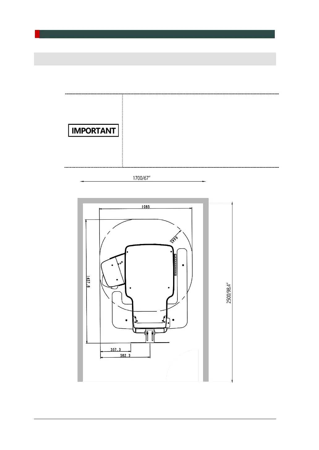 <Without CEPH Unit (optional): 2,500 mm (L) x 1,700 mm (W) or wider >