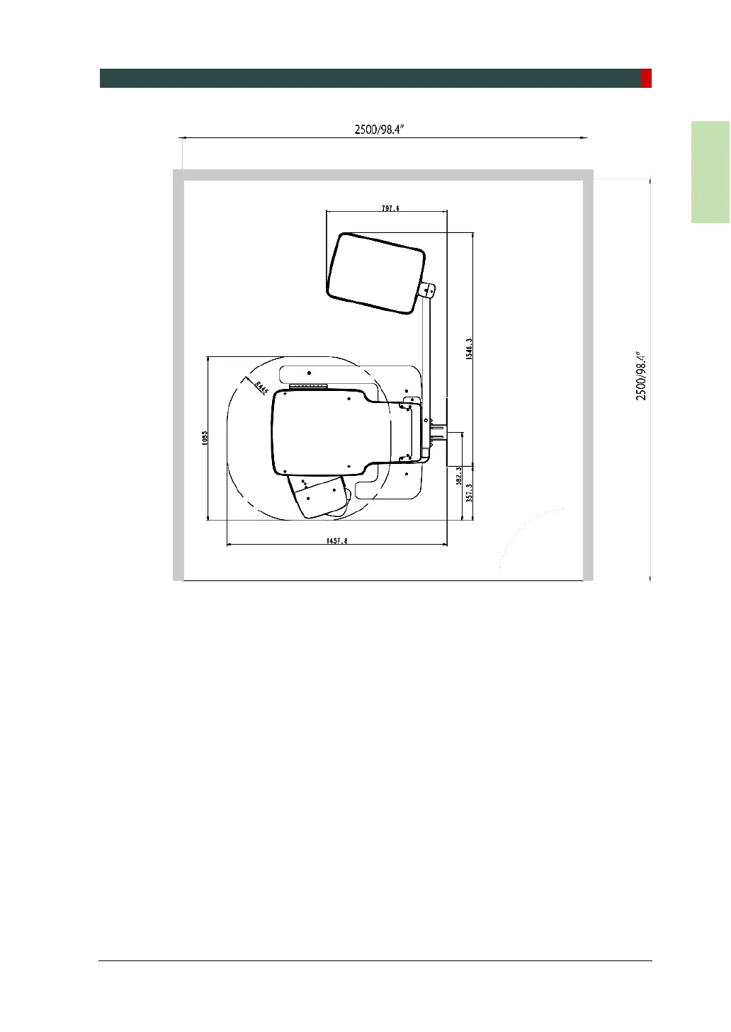 <With CEPH Unit (optional): 2,500 (L) x 2,500 mm (W) or wider >