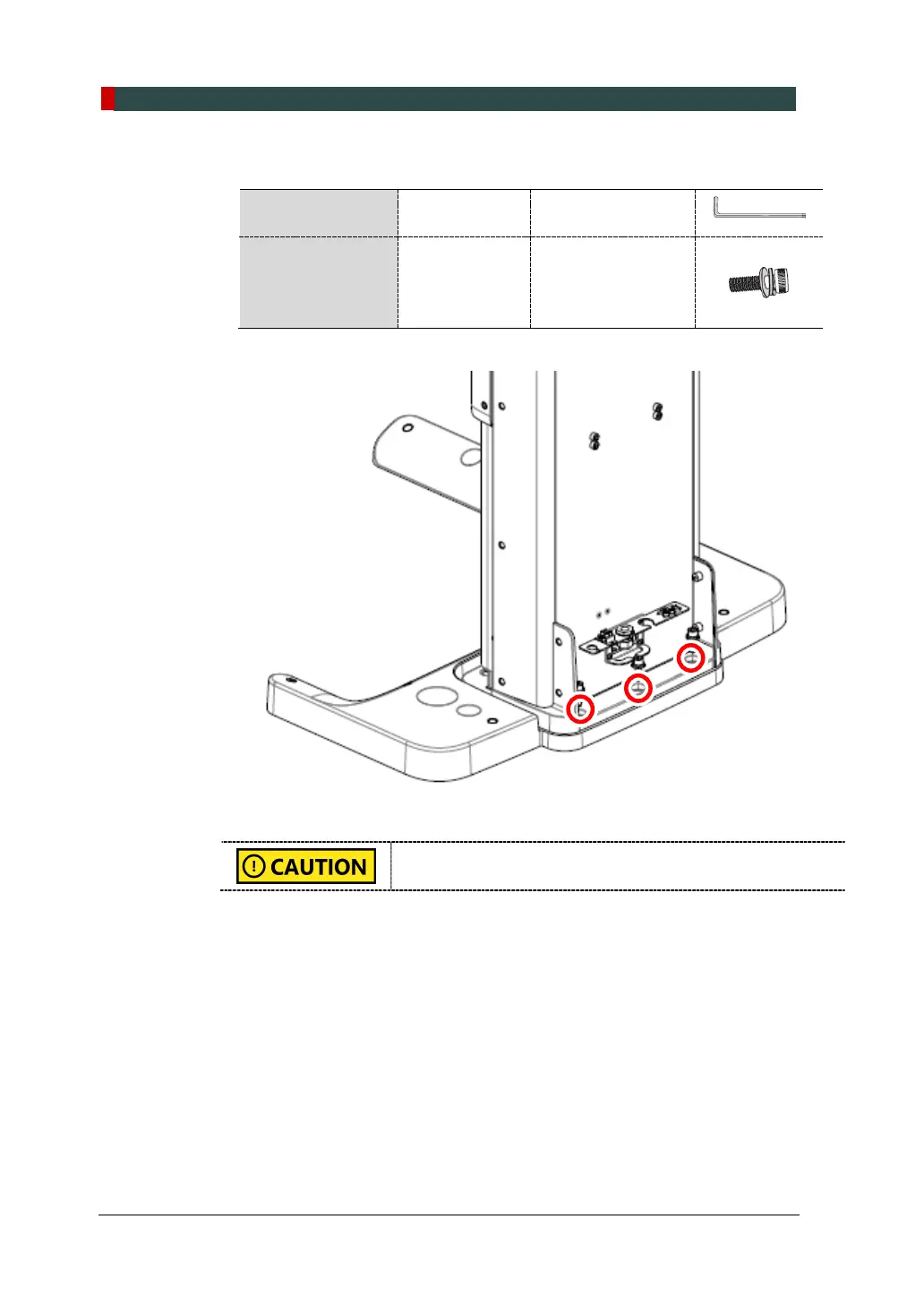 6. Tighten three wrench bolts in the column’s backside to attach the base.