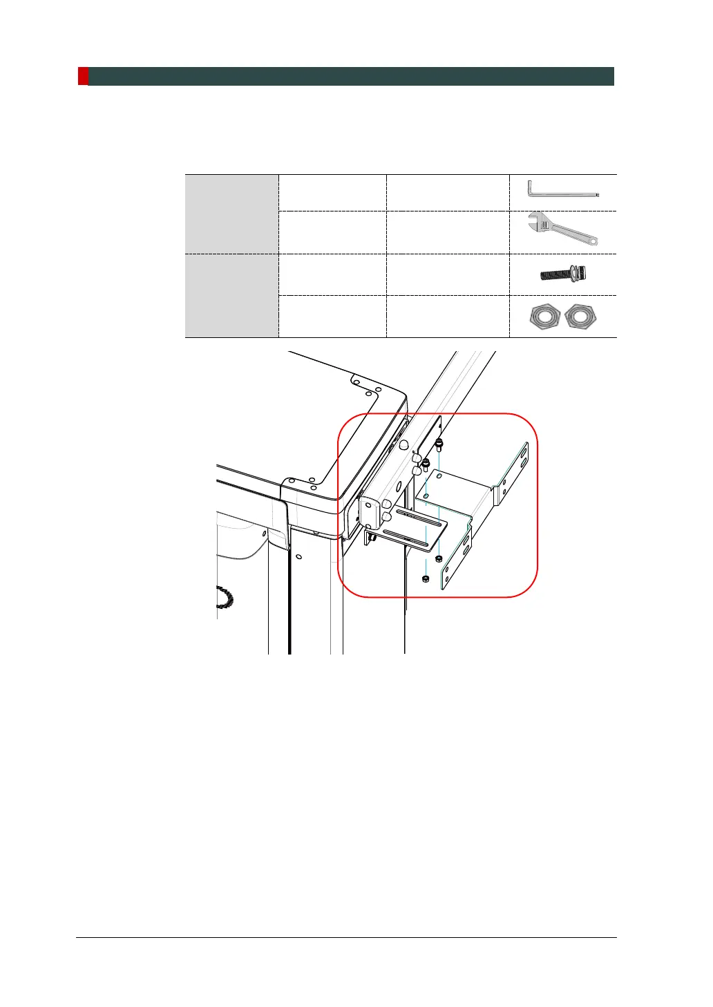 3. Connect the wall and column bracket with M8 x 25 wrench bolts. Place nuts