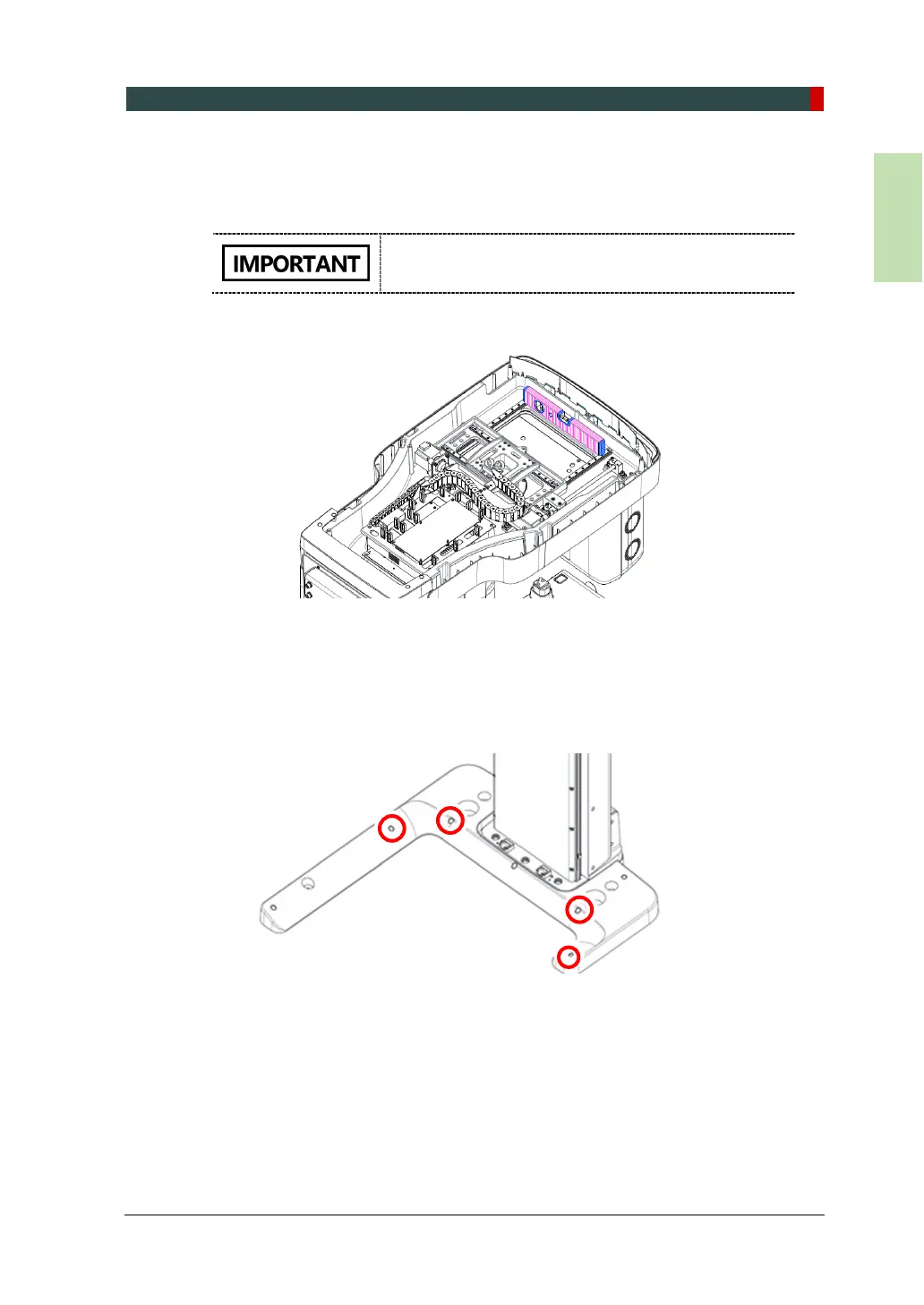 2. Use a T-shaped hex wrench to adjust the screws in circled locations until the